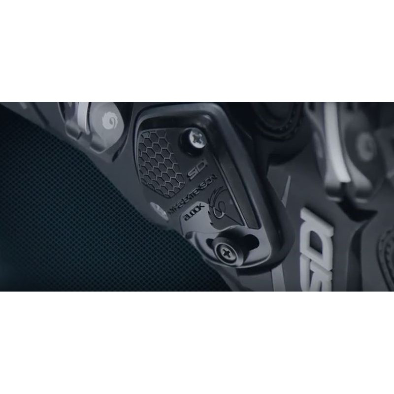 The boot leg has a replaceable inner calf plate, produced in PU and a printed rubber insert, to protect the leg from exhaust heat, wear and tear. The calf plate features an inner double adjustment, which allows to widen the circumference of the boot and accommodate even wider calves and shin guards.