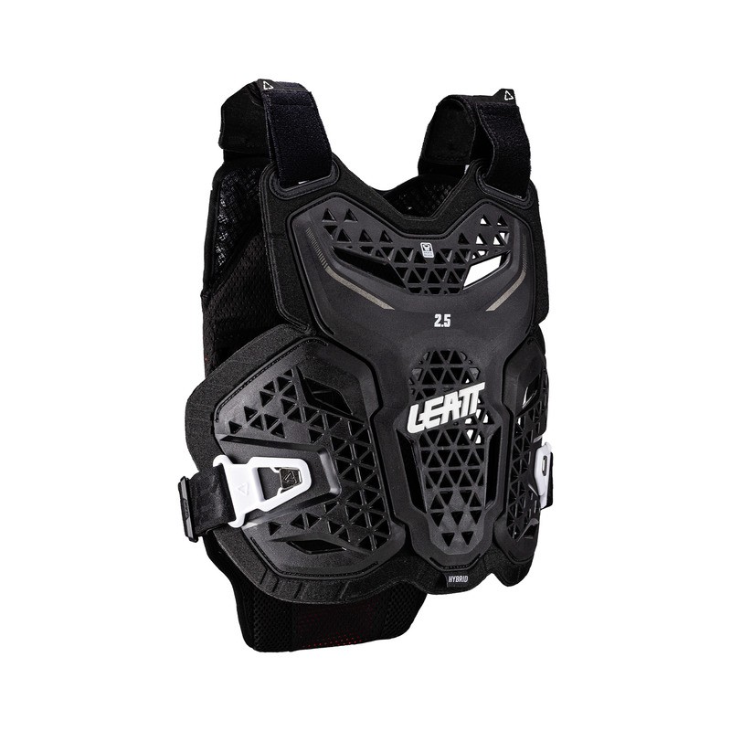 LEATT 2.5 Hybrid Junior Chest Protector to lekki i dobrze wentylowany ochraniacz zaprojektowany specjalnie dla młodych riderów, łączący twardą osłonę klatki piersiowej z miękką ochroną pleców.