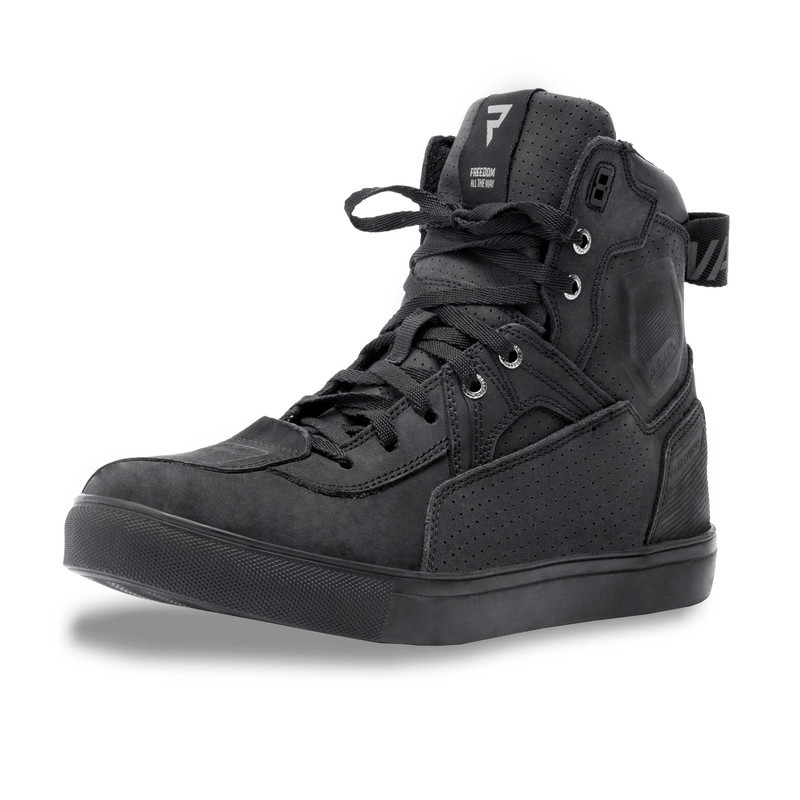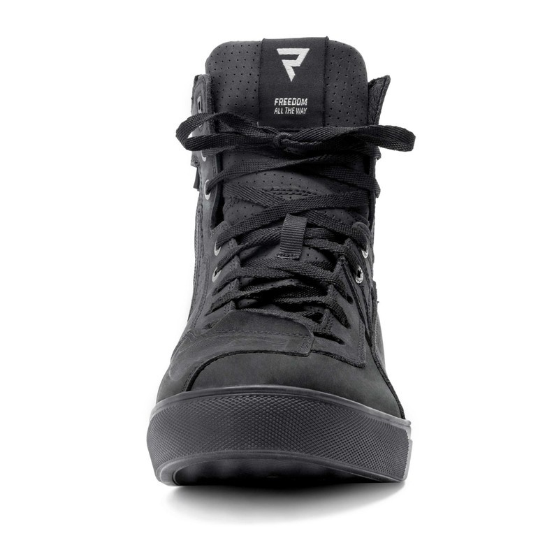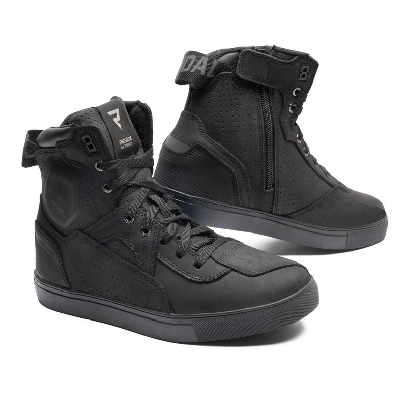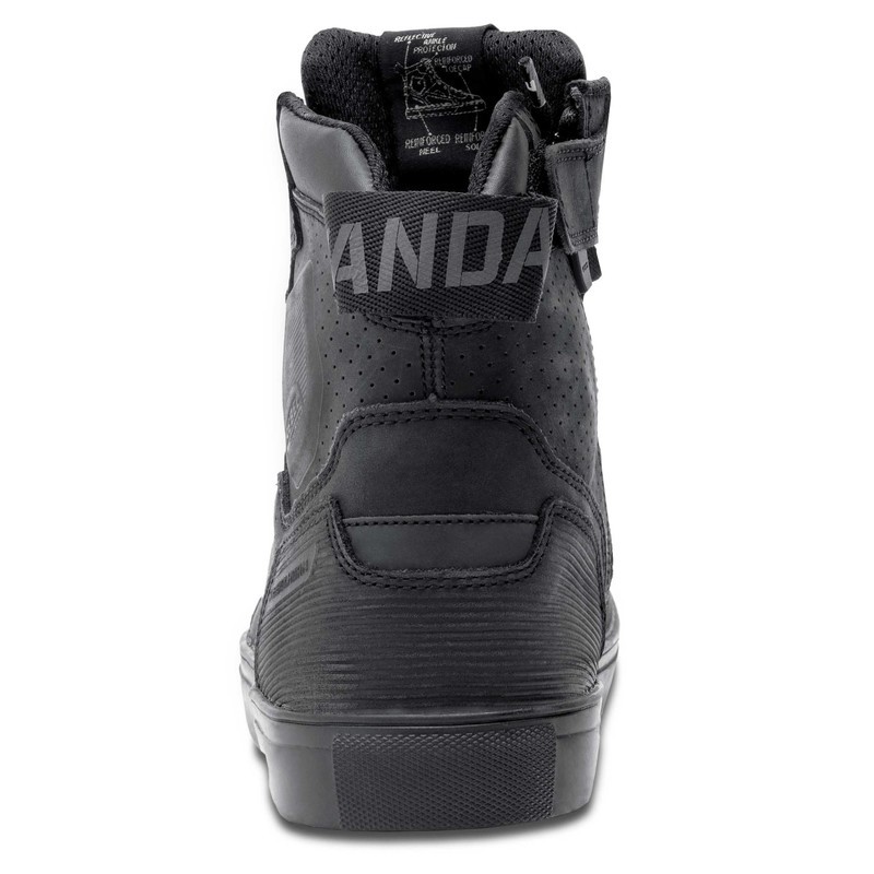 Buty motocyklowe Rebelhorn Vandal zostały uszyte ze skóry bydlęcej. Dobrą wentylację zapewniają perforowane panele i podszewka 3D mesh. Buty mają wzmocnioną podeszwę, twarde osłony pięt i kostek. Długi zamek z boku ułatwia ich zakładanie. Kolorystyka butów motocyklowych Vandal nawiązuje do kurtek Rebelhorn o tej samej nazwie.