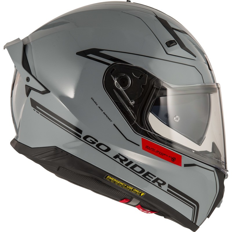 Kask motocyklowy NZI GO RIDER STREAM DUO to nowoczesny kask integralny zaprojektowany z myślą o najwyższym poziomie bezpieczeństwa i stabilności podczas jazdy. Spełnia normę UN R22.06/ECE 22.06, a jego aerodynamiczna konstrukcja ze spoilerem zmniejsza opór powietrza, obciążenie karku i poprawia stabilność przy wyższych prędkościach. Wyposażony w blendę przeciwsłoneczną oraz przygotowany do montażu systemów audio i wideo, świetnie sprawdzi się w codziennej jeździe i podczas dłuższych tras. Testy w tunelu aerodynamicznym oraz możliwość szybkiego demontażu poduszek policzkowych zwiększają bezpieczeństwo czynne i bierne.