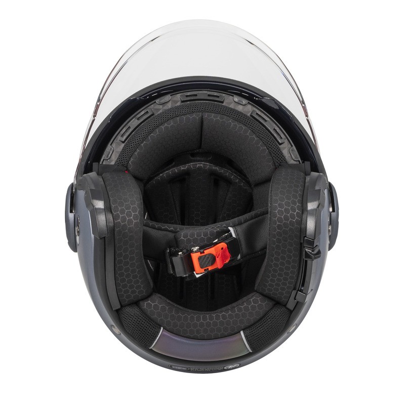 - Możliwość jazdy z wizjerem lub bez, szybkiego wypięcia szyby bez narzędzi