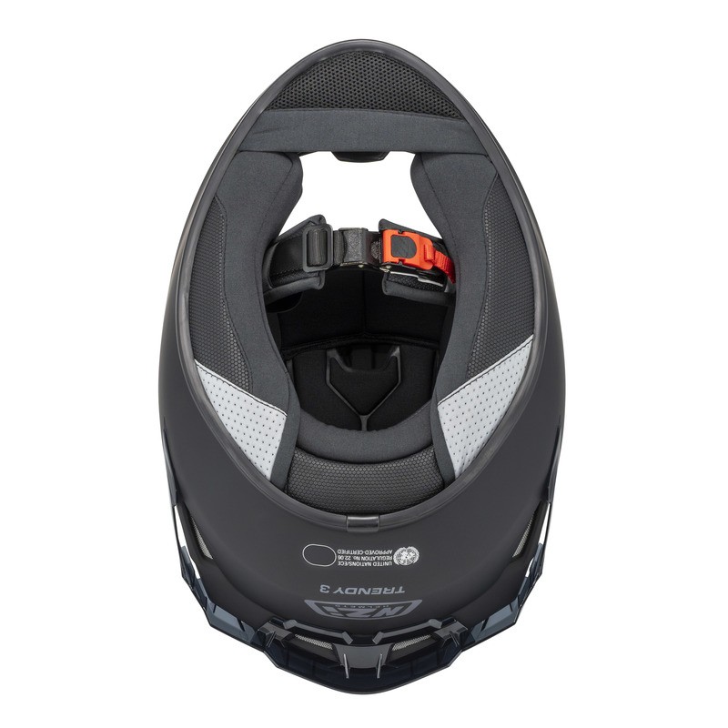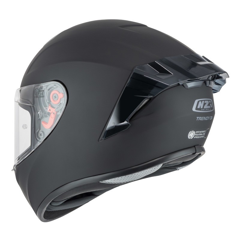 Kask motocyklowy NZI TRENDY 3 STREAM to kask integralny spełniający normę UN ECE R22.06, zaprojektowany z myślą o miejskiej jeździe i krótkich trasach. Sportowa, dynamiczna linia skorupy oraz wbudowany spoiler nadają mu agresywny wygląd i poprawiają stabilność podczas jazdy. Wizjer o wysokiej jakości optycznej zapewnia świetną widoczność, a przygotowanie pod wkładkę Pinlock pozwala łatwo zapobiegać parowaniu. To prosty, lekki i wygodny model, który dzięki nowoczesnej grafice wyróżnia się na tle innych kasków.