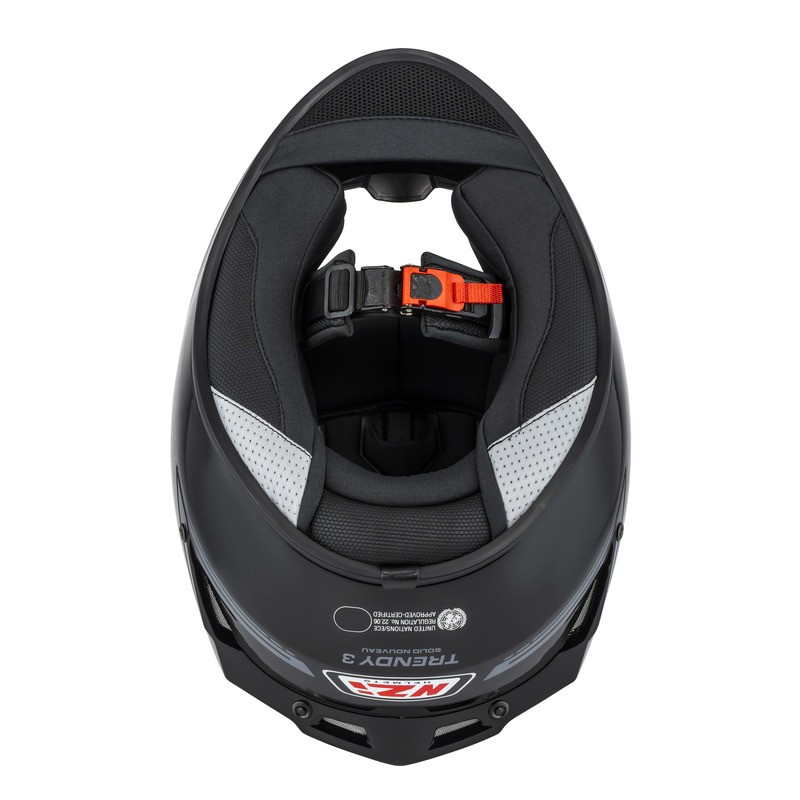 Kask motocyklowy NZI TRENDY 3 STREAM to kask integralny spełniający normę UN ECE R22.06, zaprojektowany z myślą o miejskiej jeździe i krótkich trasach. Sportowa, dynamiczna linia skorupy oraz wbudowany spoiler nadają mu agresywny wygląd i poprawiają stabilność podczas jazdy. Wizjer o wysokiej jakości optycznej zapewnia świetną widoczność, a przygotowanie pod wkładkę Pinlock pozwala łatwo zapobiegać parowaniu. To prosty, lekki i wygodny model, który dzięki nowoczesnej grafice wyróżnia się na tle innych kasków.