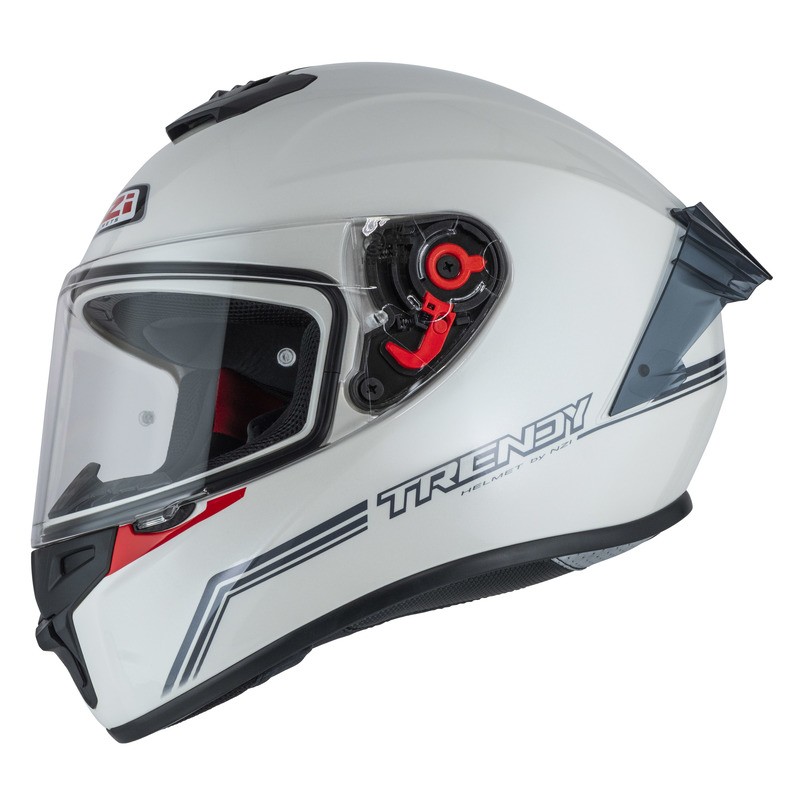 Kask motocyklowy NZI TRENDY 3 STREAM to kask integralny spełniający normę UN ECE R22.06, zaprojektowany z myślą o miejskiej jeździe i krótkich trasach. Sportowa, dynamiczna linia skorupy oraz wbudowany spoiler nadają mu agresywny wygląd i poprawiają stabilność podczas jazdy. Wizjer o wysokiej jakości optycznej zapewnia świetną widoczność, a przygotowanie pod wkładkę Pinlock pozwala łatwo zapobiegać parowaniu. To prosty, lekki i wygodny model, który dzięki nowoczesnej grafice wyróżnia się na tle innych kasków.
