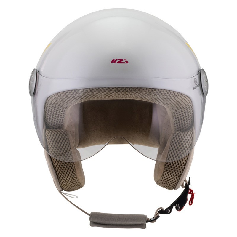 Kask motocyklowy NZI PASARELA to ultralekki, miejski kask typu mini-jet, zaprojektowany przez Agathę Ruiz de la Prada i wyróżniający się unikalnym, modowym stylem. Wykonany z innowacyjnej skorupy Nugema®, łączącej termoplastik o wysokiej odporności na uderzenia, zapewnia trwałość i bezpieczeństwo przy zachowaniu minimalnej wagi. To idealny wybór do codziennej jazdy miejskiej - stylowy, komfortowy i niezwykle praktyczny.