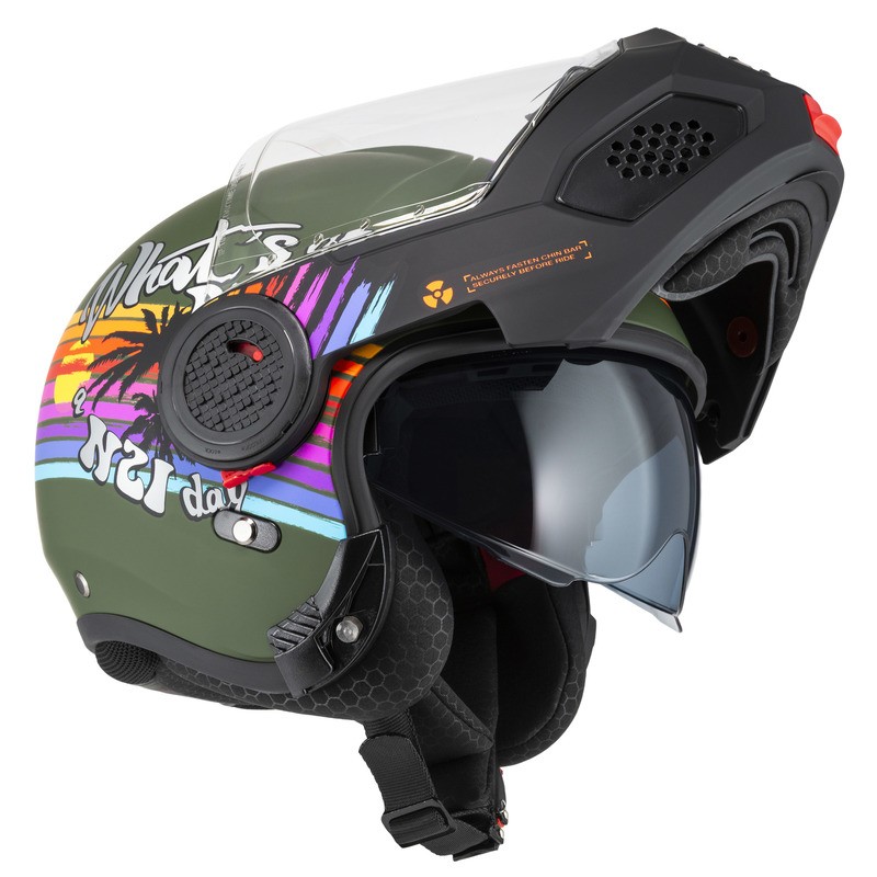 KASK MOTOCYKLOWY NZI MINIMOD DUO RAINBOW GREENBLACK SILVER MATT XS