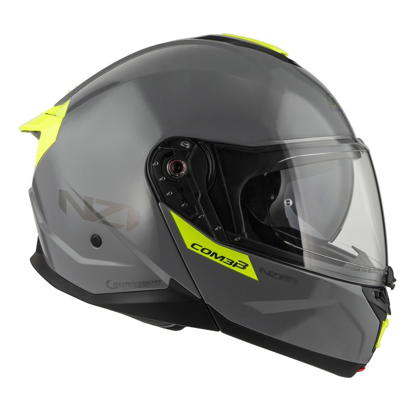 Kask motocyklowy NZI COMBI 3 DUO to nowoczesny i lekki kask szczękowy zaprojektowany z myślą o jeździe zarówno miejskiej, jak i szosowej. Spełnia rygorystyczne normy UN ECE R22.06 oraz P/J, co gwarantuje bezpieczeństwo w trybie otwartym i zamkniętym. Wysokiej jakości wizjer z możliwością uniesienia go do jazdy w ciepłe dni poprawia cyrkulację powietrza i ogranicza parowanie, a wbudowana blenda gwarantuje komfort w słoneczne dni. Udoskonalone wnętrze oraz dobra aerodynamika skorupy ze spoilerem czynią ten kask komfortowym i stabilnym nawet przy większych prędkościach.