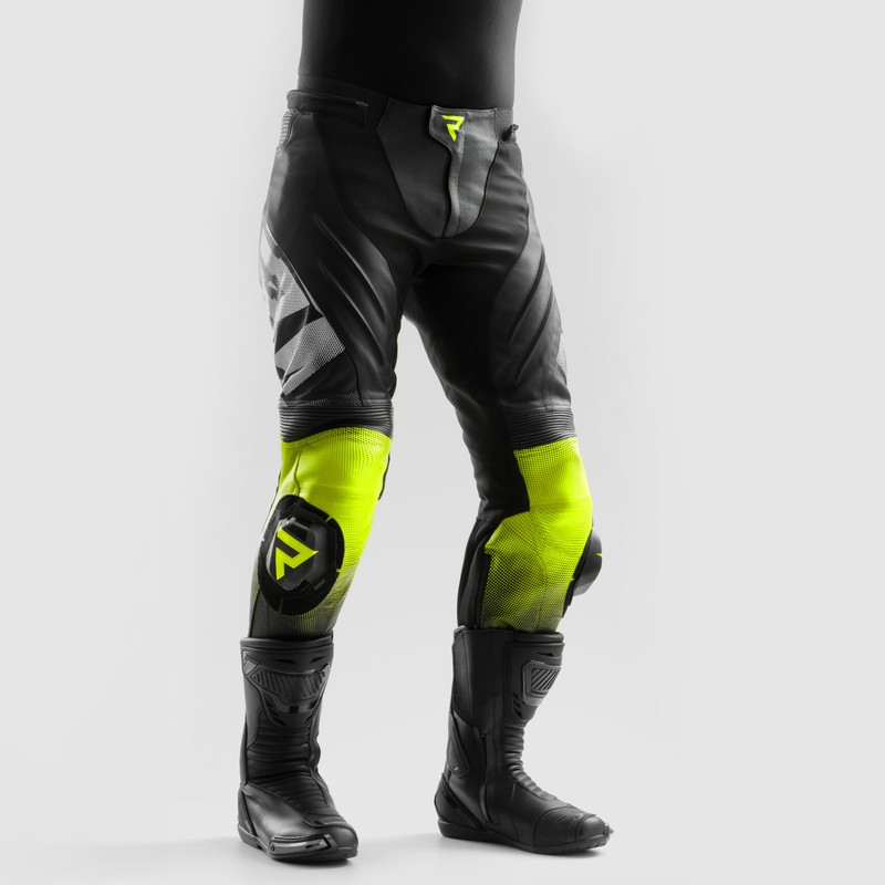 SPODNIE MOTOCYKLOWE SKÓRZANE REBELHORN INFERNO BLACK WHITE FLUO YELLOW