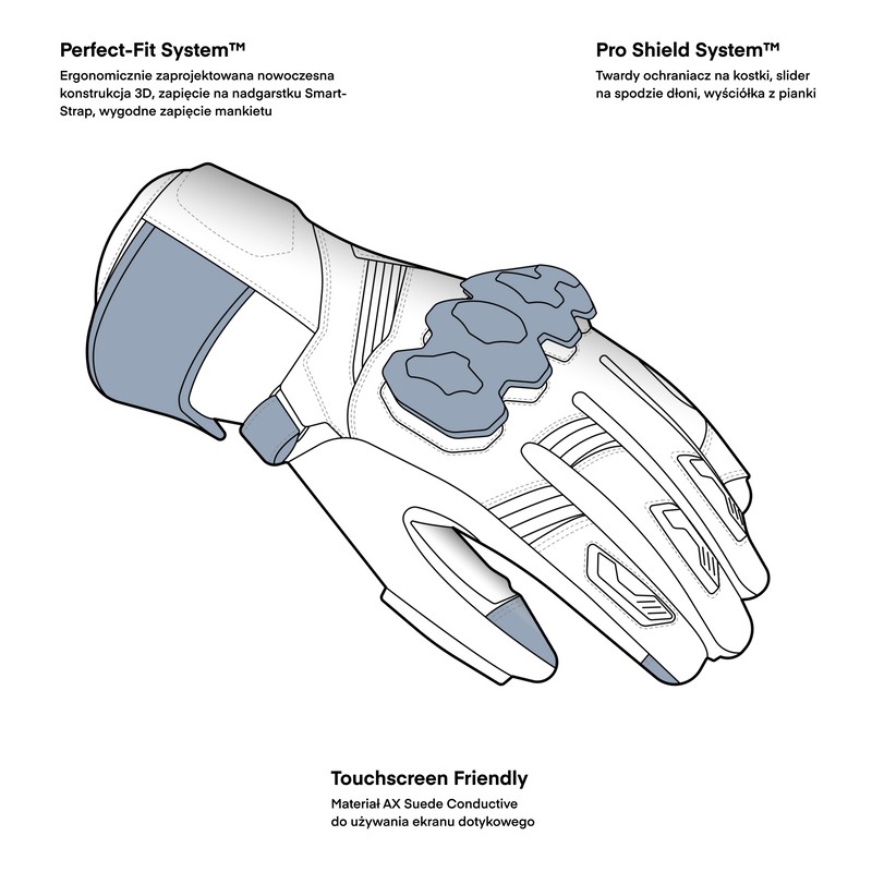 Rękawice motocyklowe Rebelhorn Viper są przeznaczone dla motocyklistów ceniących sportowo-miejski charakter jazdy. Ich zaawansowane cechy takie jak slider na spodzie dłoni, twardy ochraniacz kostek i panele dotykowe, w połączeniu z nowoczesną, ergonomiczną konstrukcją, gwarantują maksymalny komfort i bezpieczeństwo na drodze.