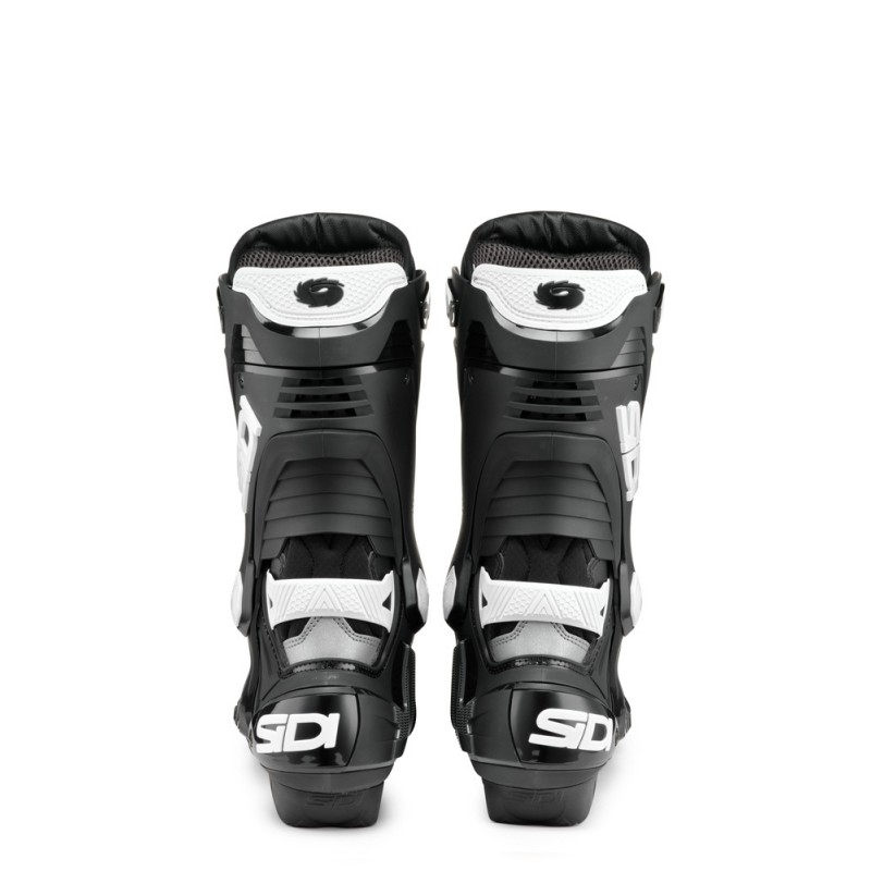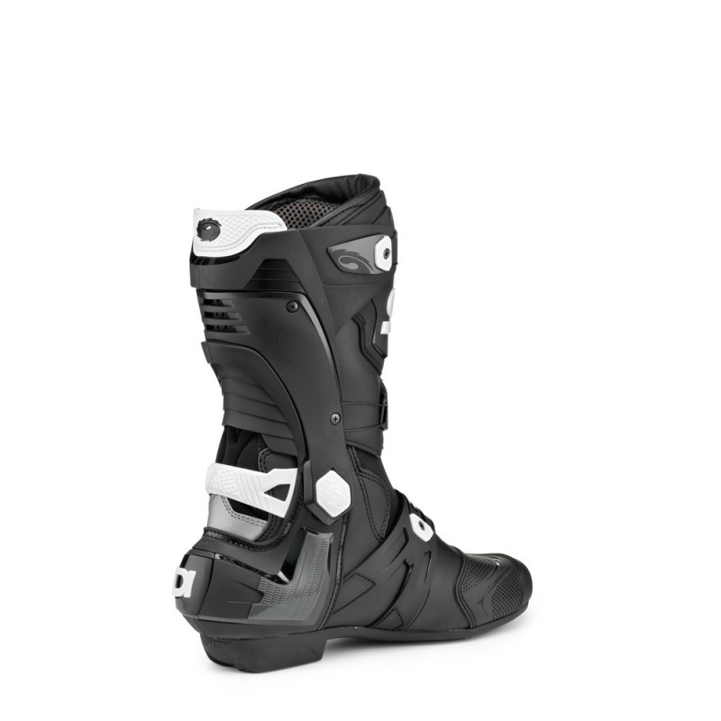 Asymetryczny i anatomiczny krój pięty jest wyposażony w miękką, nieruchomą wkładkę po wewnętrznej stronie kostki dla lepszego przylegania i kontaktu z motocyklem, z systemem amortyzacji wstrząsów z tyłu i na zewnątrz. Obudowa i system amortyzujący są wymienne za pomocą śruby i systemu blokującego.